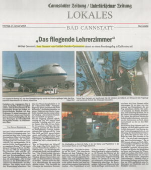 Ein Höhepunkt in der langjährigen Zusammenarbeit mit dem SOFIA-Projekt, an dem das GDG als Partnerschule teilnimmt, war die Teilnahme des AG-Lehrers Sven Hanssen an einem Forschungsflug mit der für das Projekt umgebauten Boeing 747 in Kalifornien.